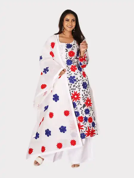 ₹8,640.00 – ₹10,368.00White Organdi with White Cotton Aplic